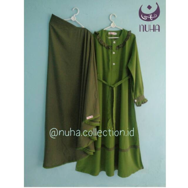 Gamis Wolfis Zaida Warna Hijau Olive Kombinasi Hijau Army Shopee Indonesia